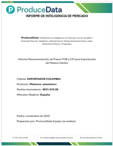 Plataforma de inteligencia artificial para exportadores de frutas tropicales que predice precios internacionales en tiempo real y optimiza márgenes de venta..